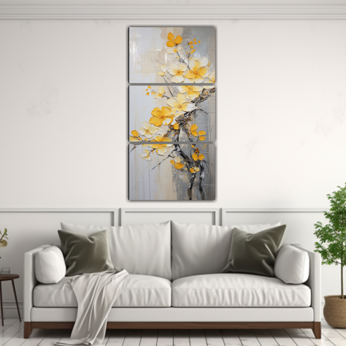 Pintura En Lienzo Vintage De Flores De Cerezo Amarillas Para Pared De Comedor