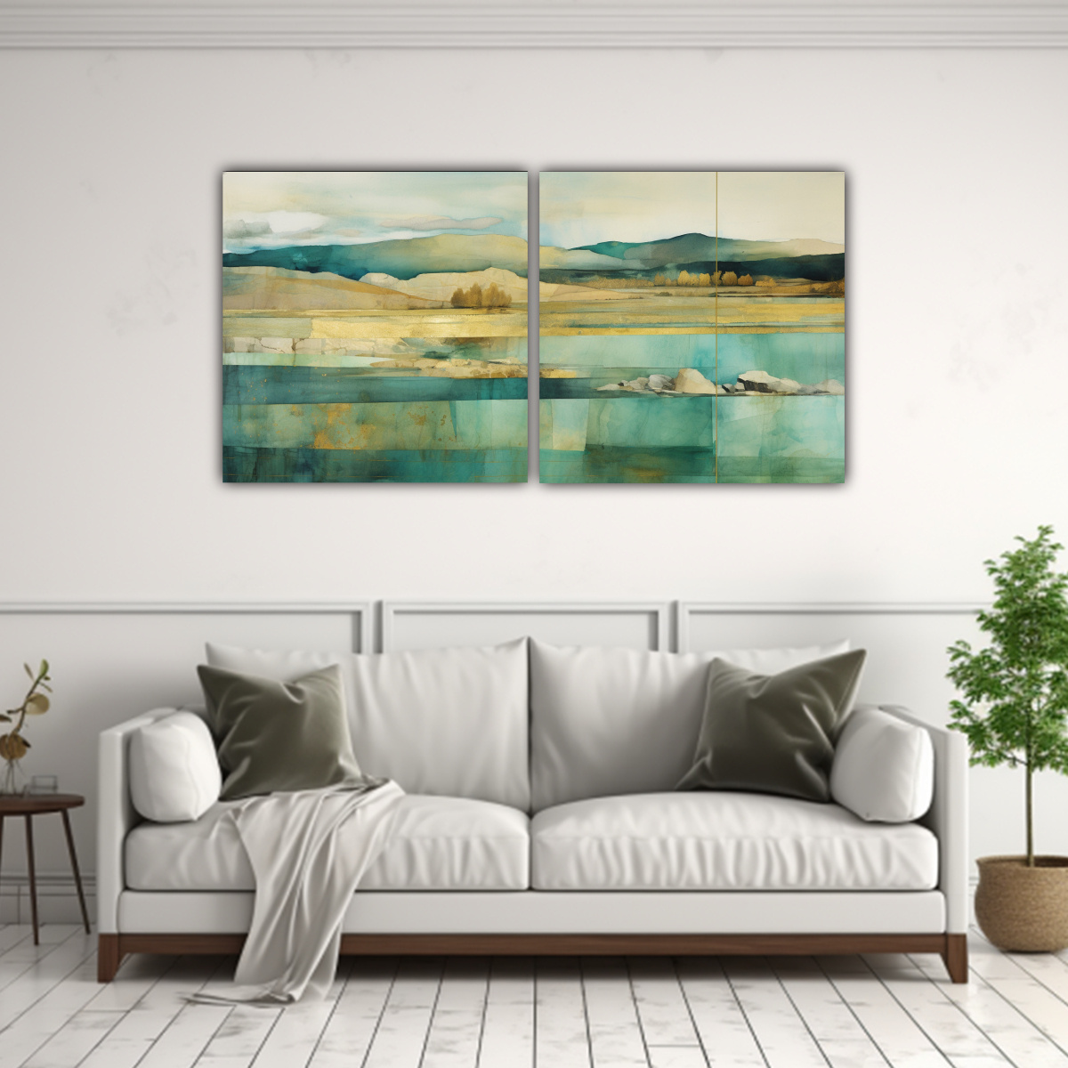 Nuestro cuadro abstracto en tela con acuarela verde, turquesa y dorado es perfecto para añadir un toque de elegancia y estilo a tu decoración Con colores como el plateado, azul marino grisaceo, gris, dorado, chocolate y menta, este cuadro será el centro de atención en cualquier habitación