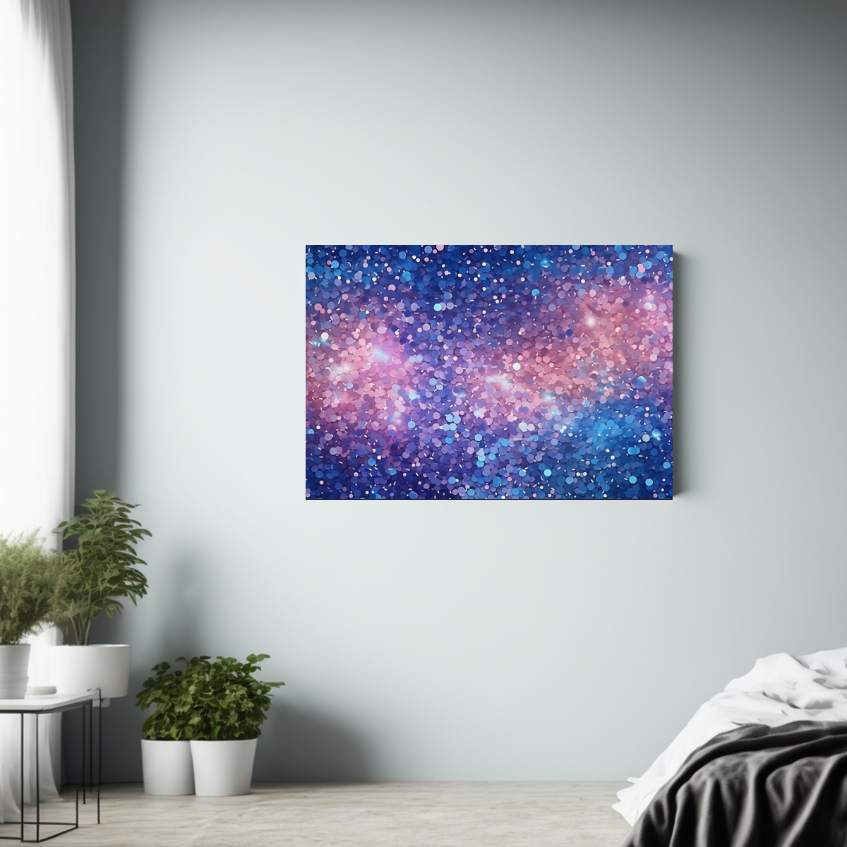 Este cuadro brillante azul y destellos es ideal para realzar la elegancia de tu sala de estar Colócalo sobre un sofá blanco para crear un impacto visual sofisticado y moderno ¡Atrévete a darle un toque de color a tu espacio!