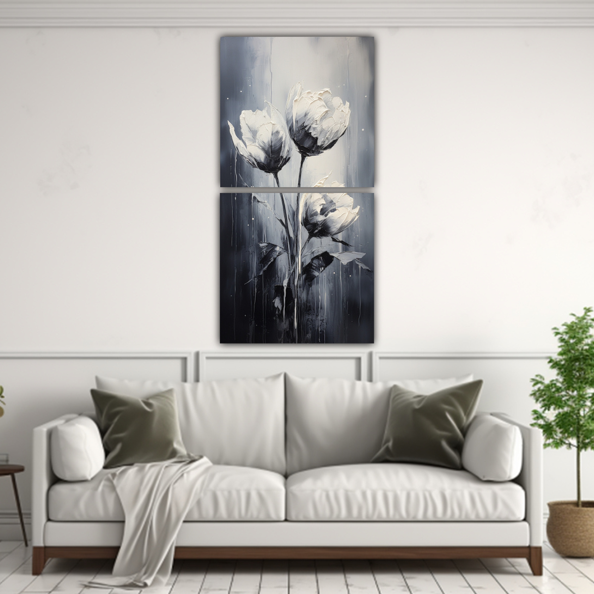 DecoCuadros te ofrece la mejor calidad y precios económicos en cuadros decorativos impresos en tela de alta calidad con bastidores de madera El diseño presenta tulipanes negros en tonos azul marino grisáceo, plateado, gris y lila Compra online y recibe tu cuadro en Santiago de forma gratuita o envío express a regiones