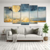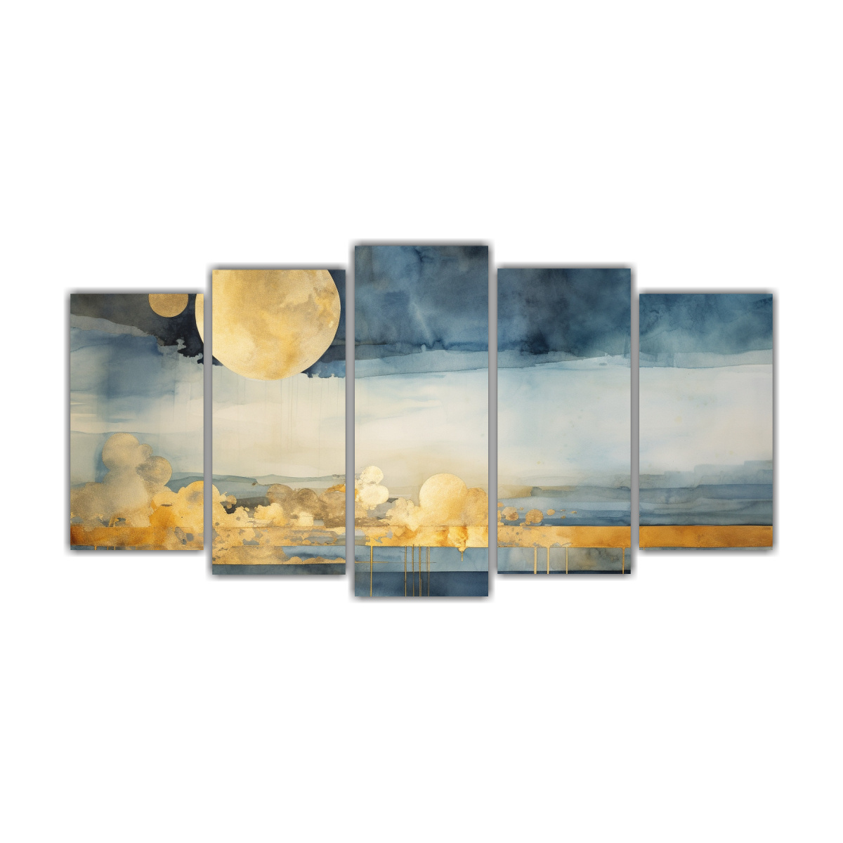 Pintura En Tela Sublimada Con Dimensiones En Azul, Turquesa Y Dorado Para Decoración