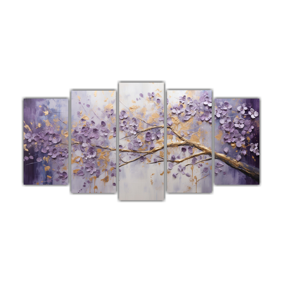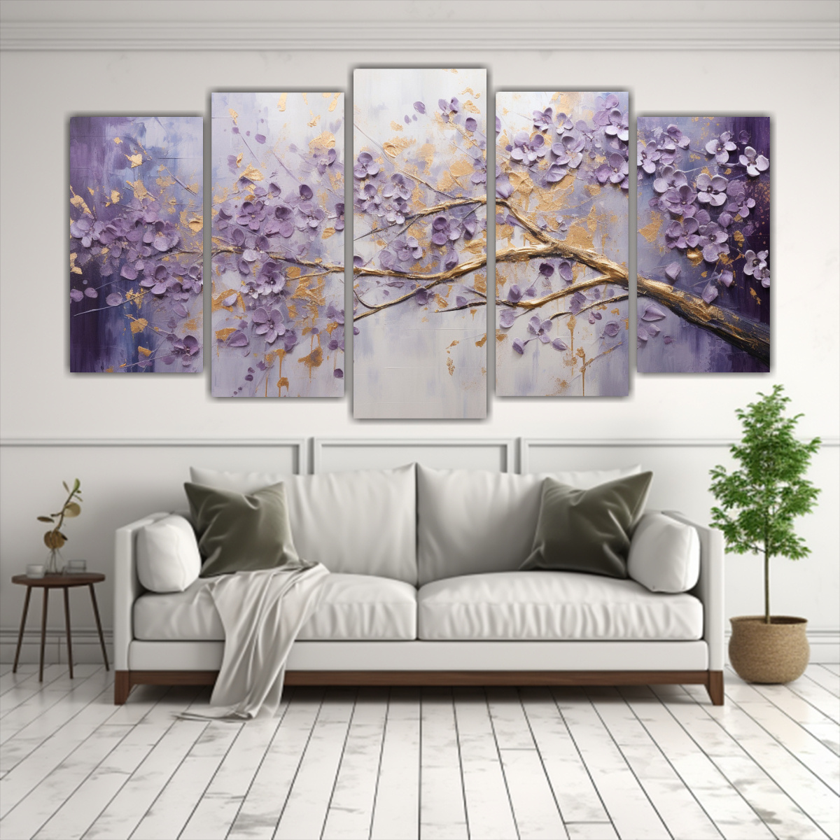 DecoCuadros presenta un cuadro decorativo en tonos púrpura y dorado en estilo de movimiento Confeccionado con tela de alta calidad y bastidores de madera, este cuadro es una obra maestra que brinda sofisticación y estilo a tus espacios Aprovecha nuestras entregas rápidas y envíos express a regiones