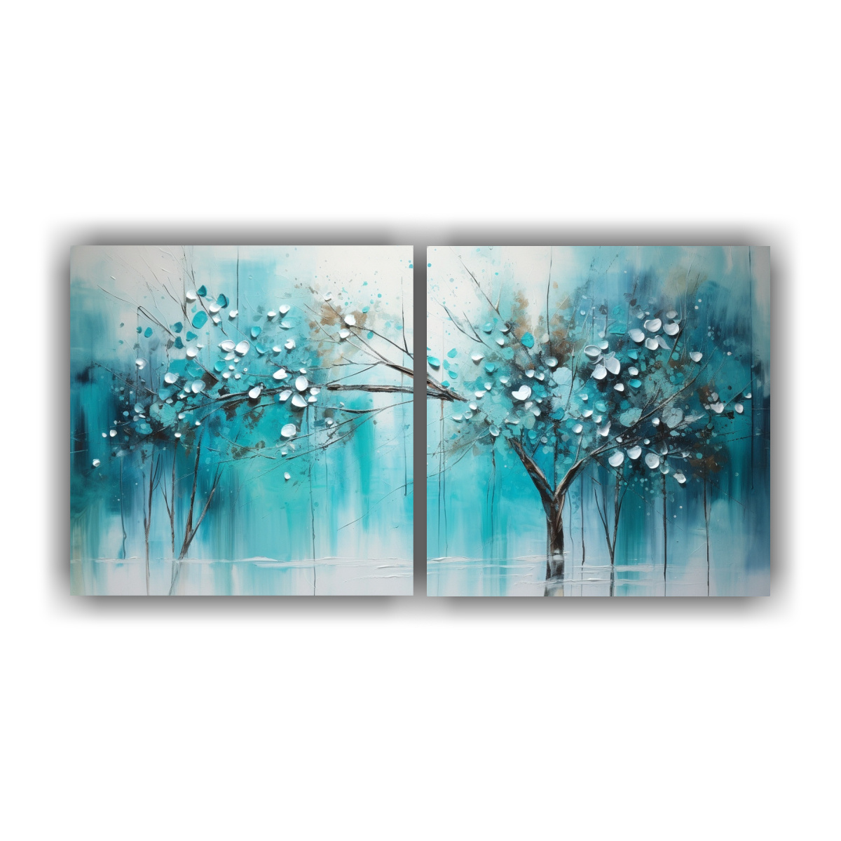 Recomendamos colocar este cuadro en un salón o sala de estar, combinándolo con muebles de colores neutros como blanco, gris o beige También puedes agregar cojines o cortinas con toques de turquesa o plateado para una decoración armoniosa Este cuadro será el centro de atención en tu espacio, añadiendo elegancia y sofisticación