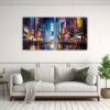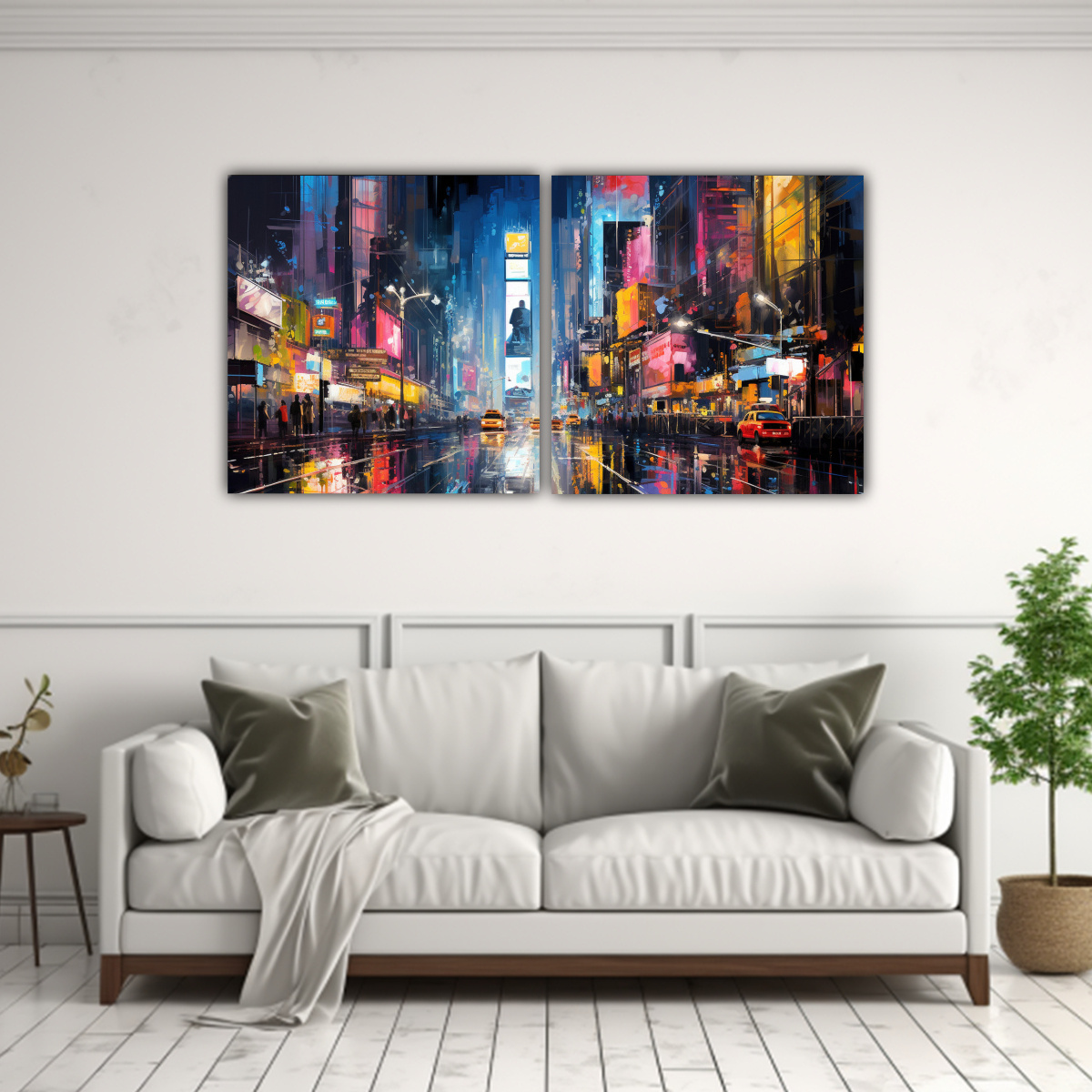 Este cuadro enigmático de una bulliciosa calle de la ciudad se vería perfecto en el salón o en la sala de estar Combínalo con muebles modernos en tonos neutros para crear un ambiente elegante y sofisticado También puedes colocarlo en el dormitorio para agregar un toque de color y energía ¡Deja volar tu imaginación y encuentra el lugar perfecto para este cuadro exclusivo de DecoCuadros!