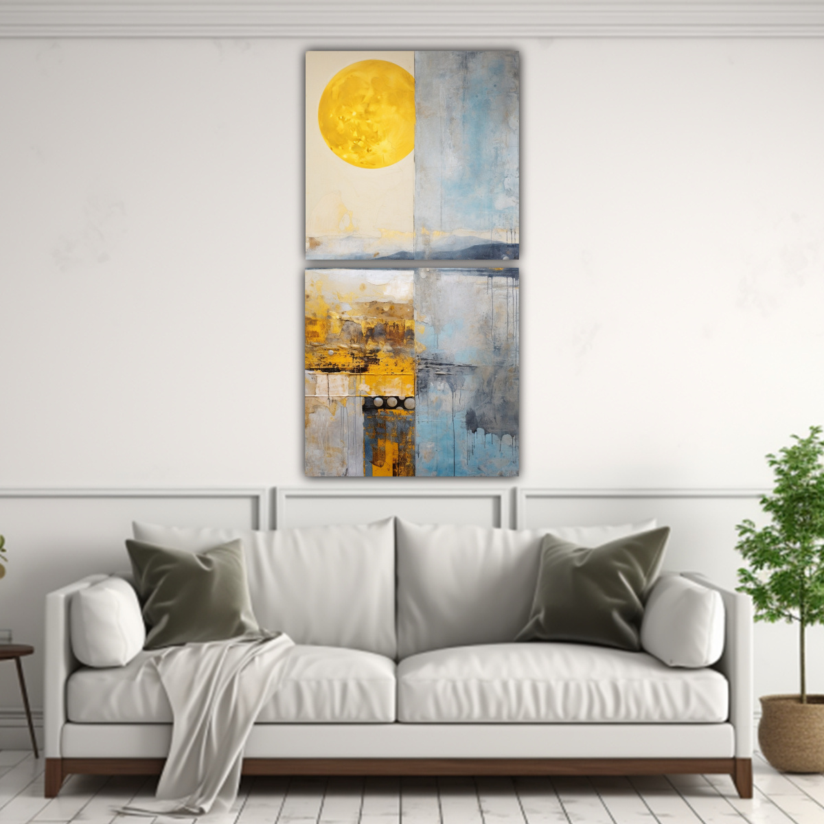 Este cuadro enigmático con acuarelas amarillas, verdes azuladas y plateadas se vería perfecto en un salón moderno o una oficina elegante Combínalo con muebles en tonos neutros como blanco, gris o beige, y agrega algunos detalles en dorado o plateado para resaltar los colores del cuadro Colócalo en una pared de acento o en un espacio donde puedas disfrutar de su misteriosa belleza todos los días