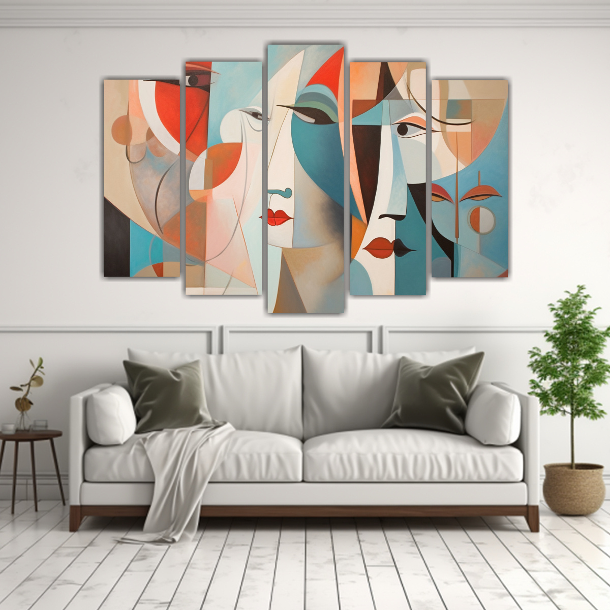 Para realzar la belleza del cuadro ‘Equilibrio Visual’, te recomendamos colocarlo en una pared de color blanco o gris claro para que los tonos azul marino, coral y turquesa resalten Combínalo con muebles en tonos neutros para un ambiente moderno y elegante