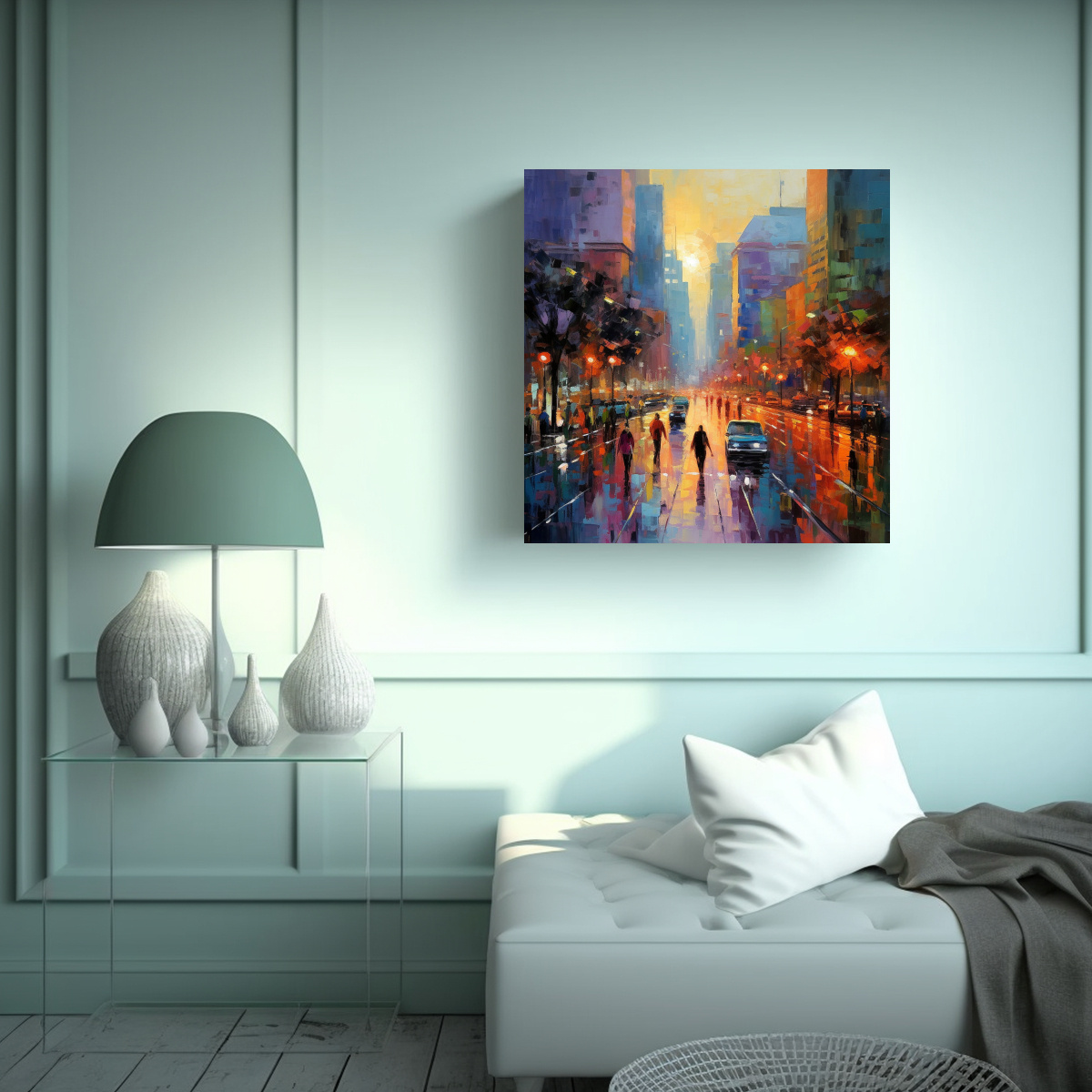 Este cuadro Pintura Escenario Vibrante sería perfecto para decorar tu sala de estar o tu espacio de trabajo Sus colores vivos como el Coral, el Turquesa y el Carmesí agregarán energía y vitalidad a la habitación Combínalo con muebles en tonos neutros como el gris y el beige para crear un contraste equilibrado Colócalo en una pared blanca para que resalte y sea el centro de atención ¡Atrévete a añadir un toque de arte y movimiento a tu ambiente!