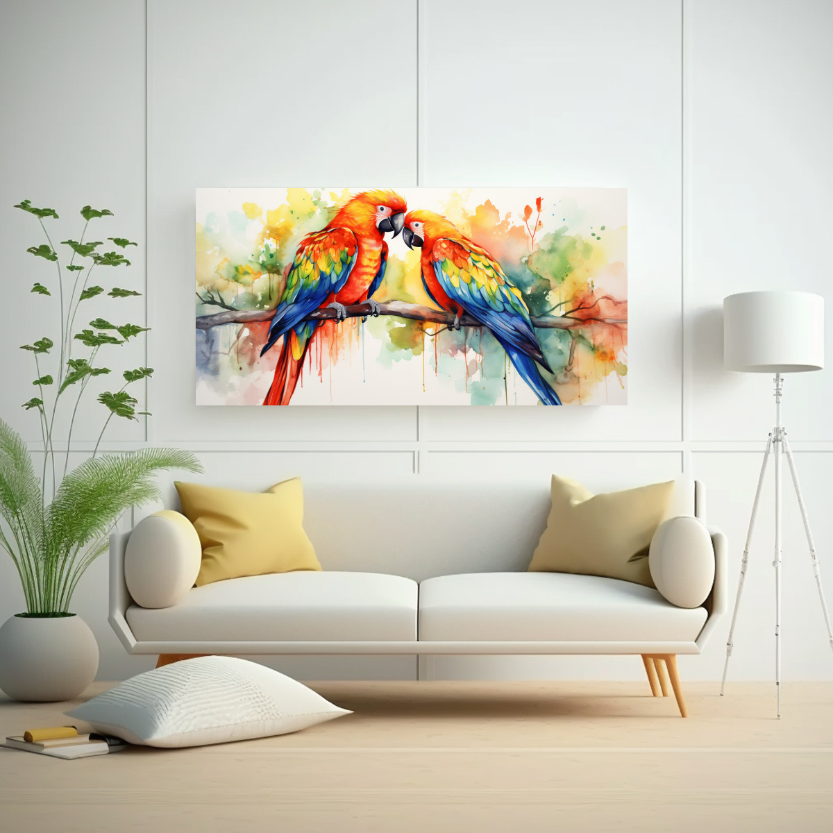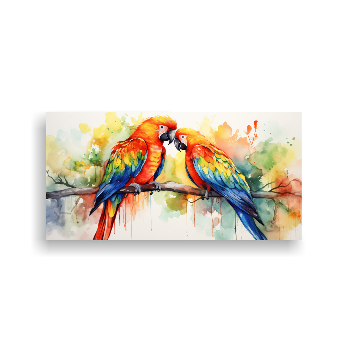 Lienzo con diseño único de loros en estilo acuarela, ideal para dar un toque de naturaleza y color a tu espacio Envíos rápidos y gratuitos en Santiago, ¡adquiere el tuyo ya!