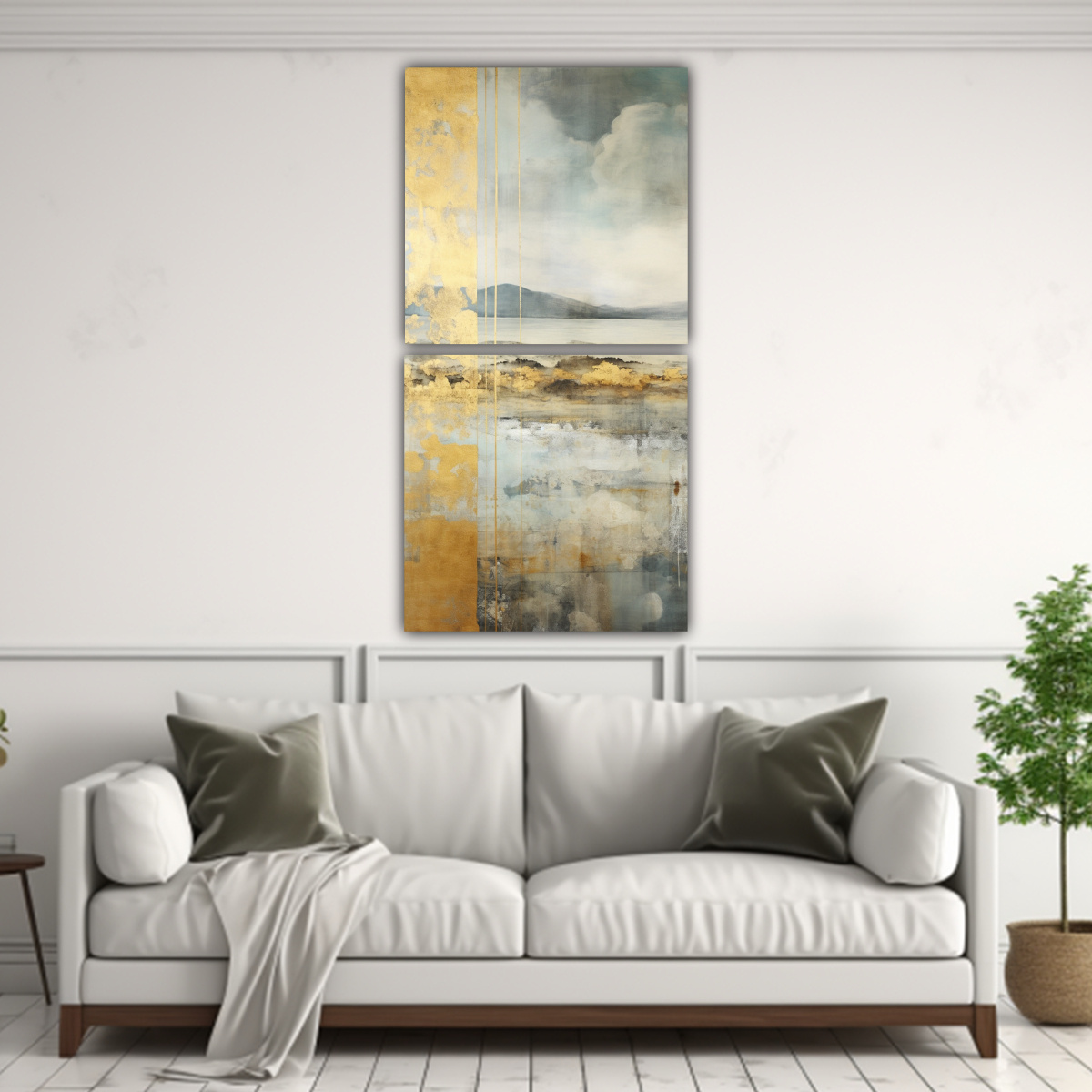 Pintura Estilo Galería Con Acuarela Dorada, Turquesa Y Plateada Dos Canvas Estilo Galeria Riqueza Visual