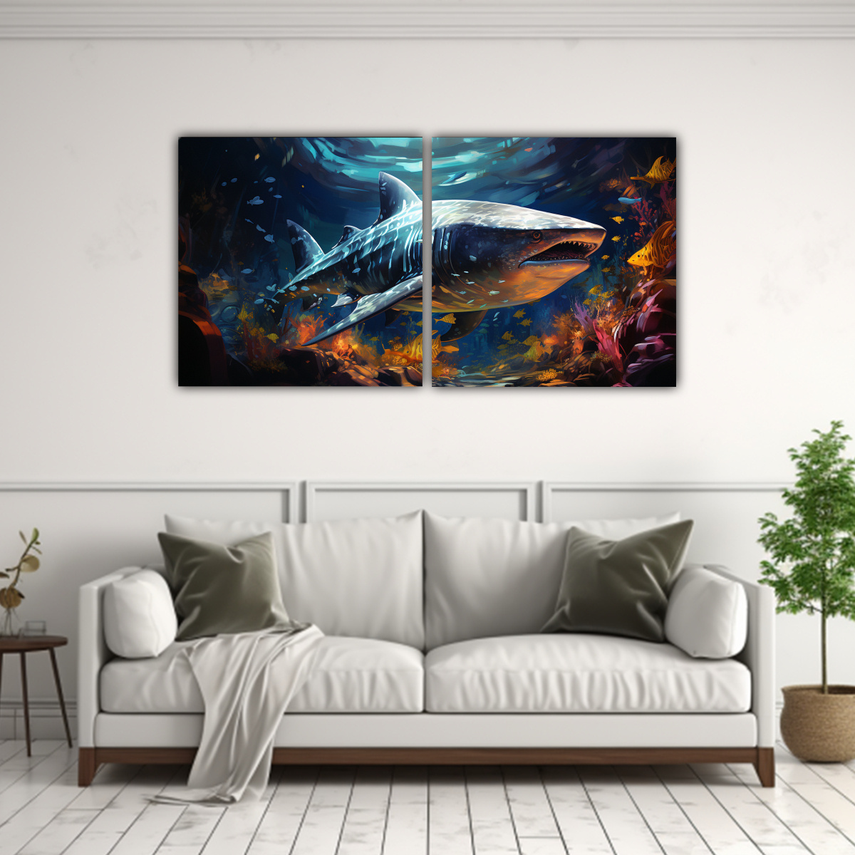 Descubre en DecoCuadros la mejor calidad y los precios más económicos del mercado Con entregas rápidas y gratuitas en Santiago y envíos express a regiones, podrás disfrutar de diseños exclusivos como este Cuadro Ballena Tiburón en estilo Estilo óleo