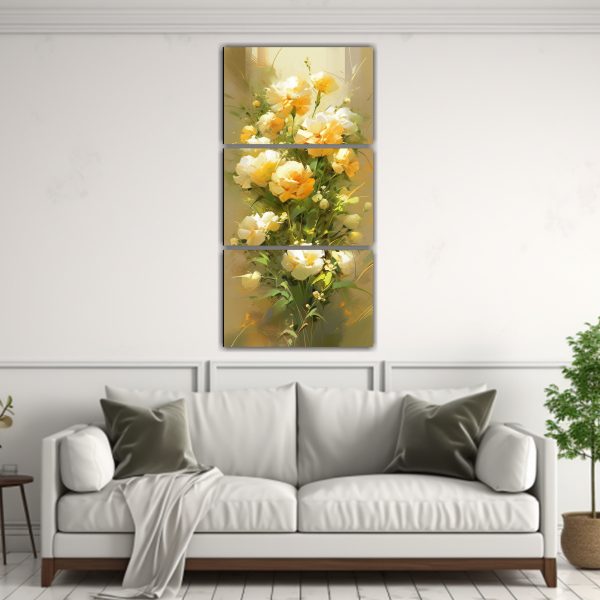 La pintura en lienzo de flores en tonos verde y dorado aportará elegancia a tu espacio Combina los colores gris, azul marino, beige, amarillo claro, dorado, chocolate y plateado para crear un ambiente sofisticado Colócalo en la sala de estar para un toque de frescura y glamour