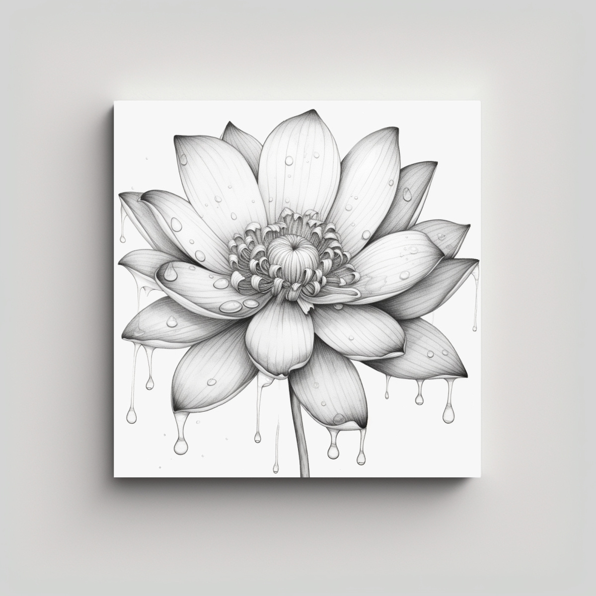 Renueva tu espacio con una pintura exquisita de loto multicolor con detalle de gotas de agua Este cuadro cuadrado de alta calidad y diseño exclusivo es el complemento perfecto para cualquier habitación Disfruta de la mejor calidad del mercado a precios económicos en DecoCuadros Envío gratis en Santiago y envíos express a regiones