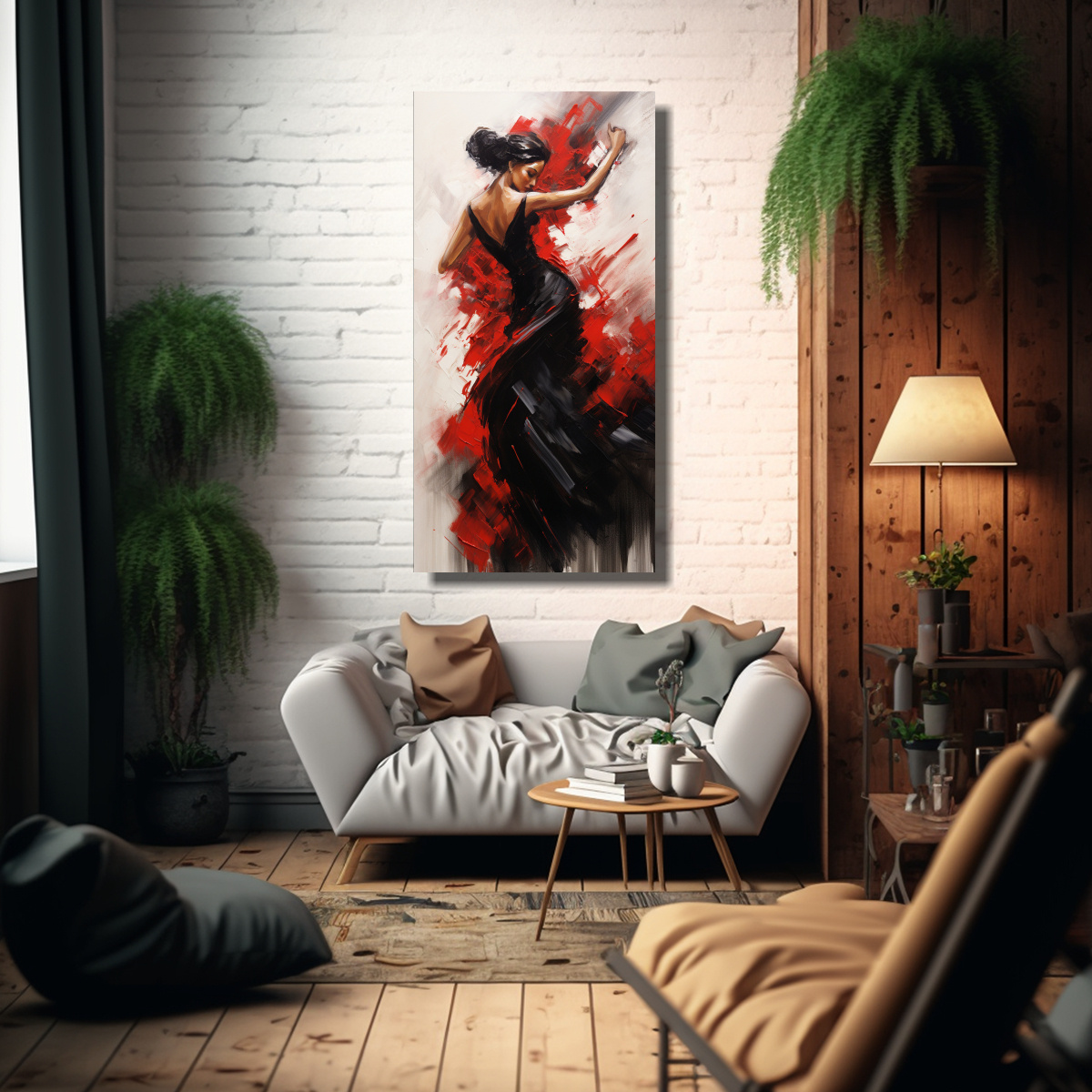 El cuadro de Pintura Flamenco: Energía cinética capturada en cuadro de DecoCuadros es la elección perfecta para darle vida a tus paredes Este diseño exclusivo, disponible en colores Beige, Carmesi, Negro, Gris y Azul Marino grisaceo, captura la energía y el movimiento de un bailarín de flamenco Impreso en tela de alta calidad con bastidores de madera, este cuadro te brinda la mejor calidad del mercado a precios económicos Además, ofrecemos envío gratis y entregas rápidas en Santiago, y envíos express a regiones
