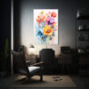 Pintura Floral Acuarela En Bastidor Con Fondo Blanco Colorido