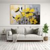 Pintura Floral Amarilla Y Negra En Lienzo Para Decoración Visual