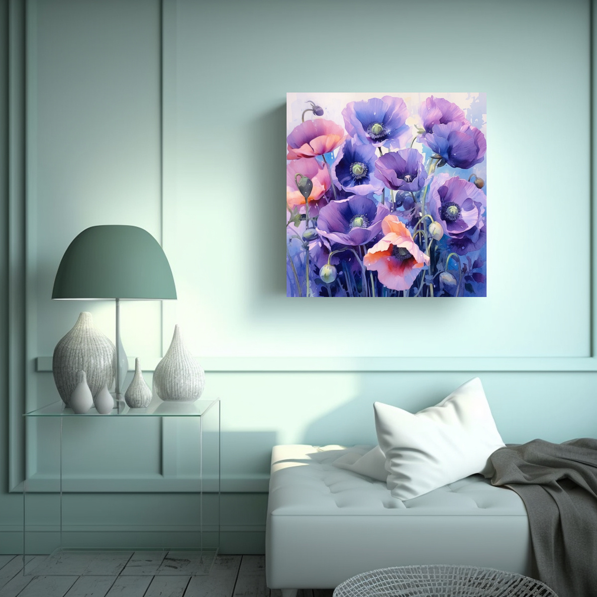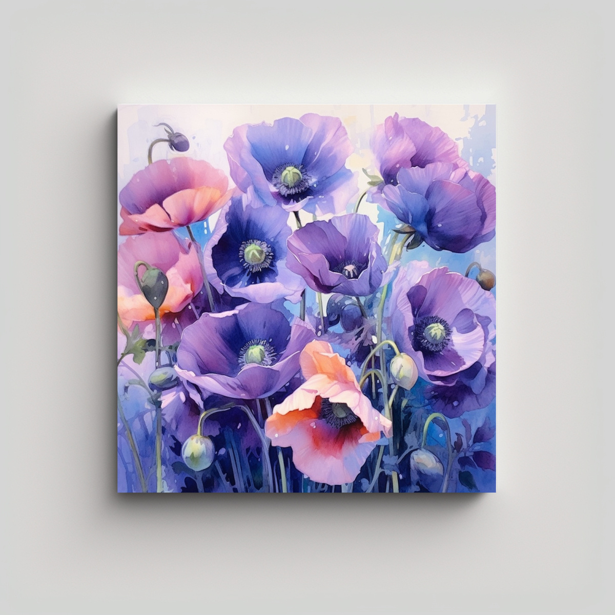 Pintura Floral Arte Forma KRUSH De Un Ramo De Amapolas En Morado Y Decoración
