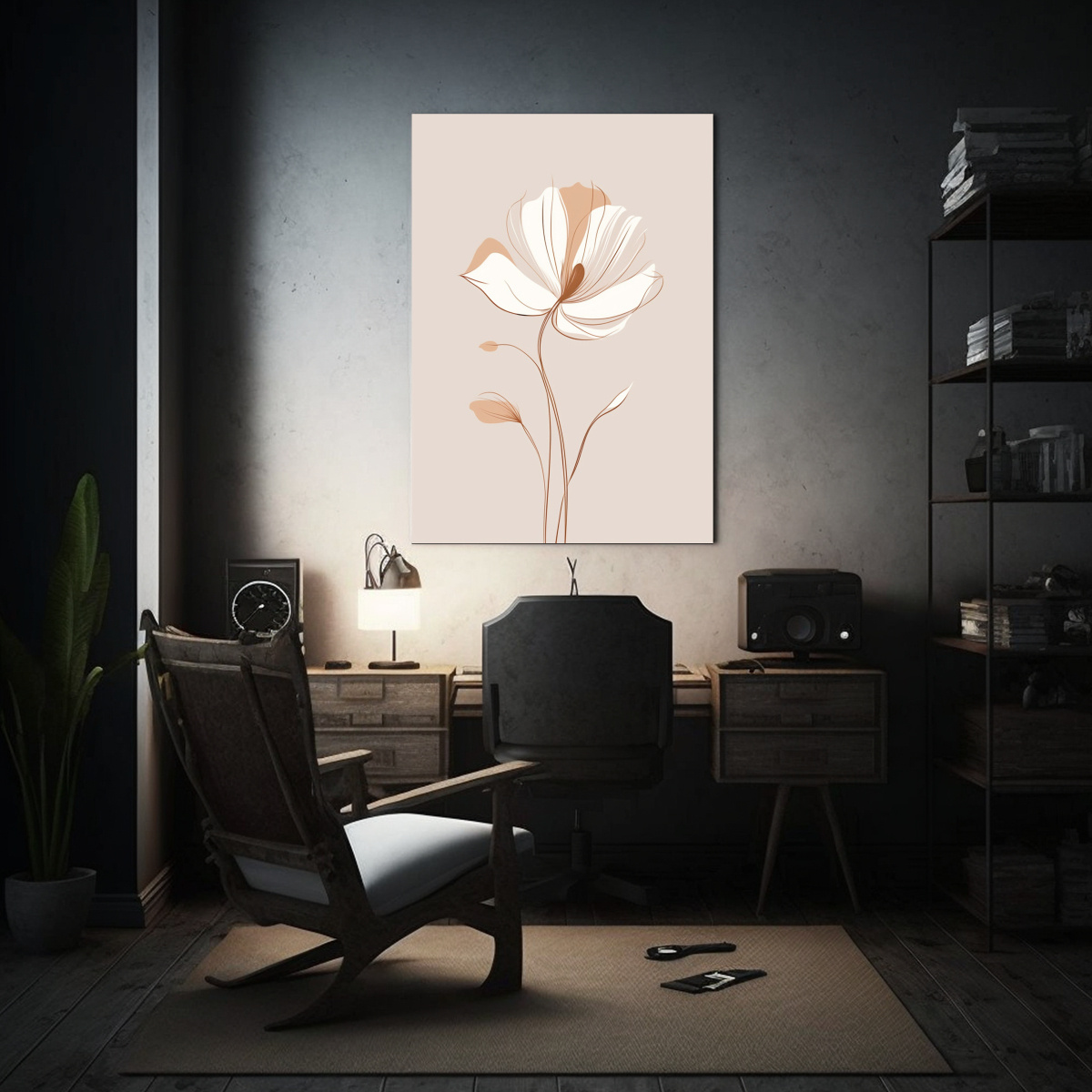 Pintura Floral Bohomoderna En Línea única De Diseño Duradero