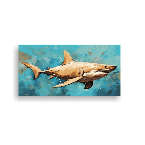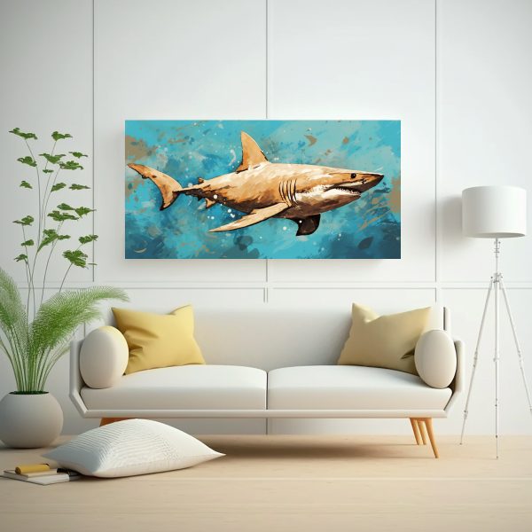 Este cuadro floral de alta calidad con un tiburón martillo en colores beige y turquesa neo pop sería ideal para colocar en la sala de estar, creando un punto focal único Combínalo con cojines en tonos turquesa y beige para lograr una decoración armoniosa y moderna