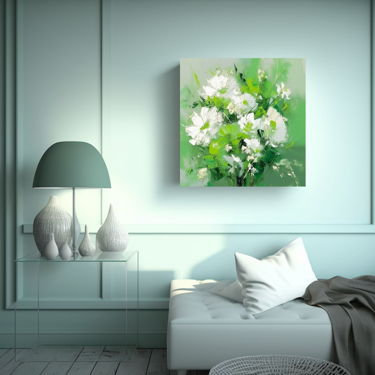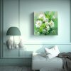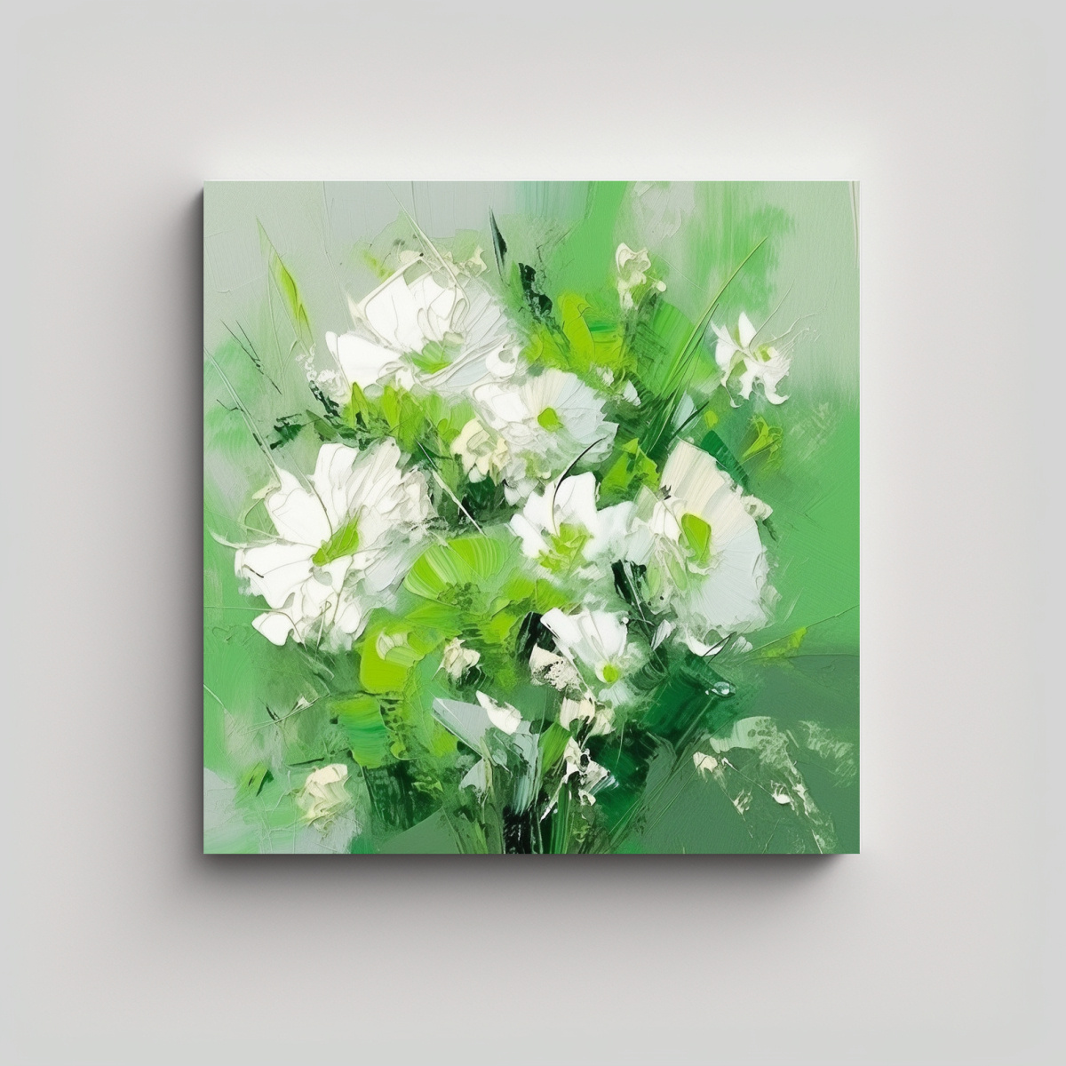 Pintura Floral En Lienzo En Colores Verde Y Blanco Arte Abstracto Fantástico