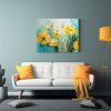 Pintura Floral En Lienzo En Esquema De Colores Amarillo Y Cian