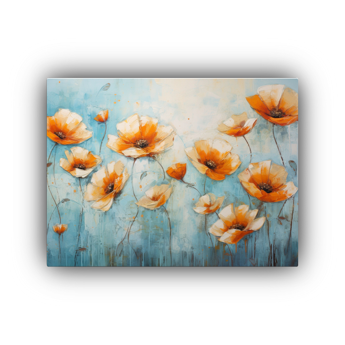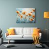 Pintura Floral En Lienzo En Tonos Naranja Y Azul Para Decoración Dinámica