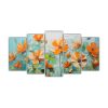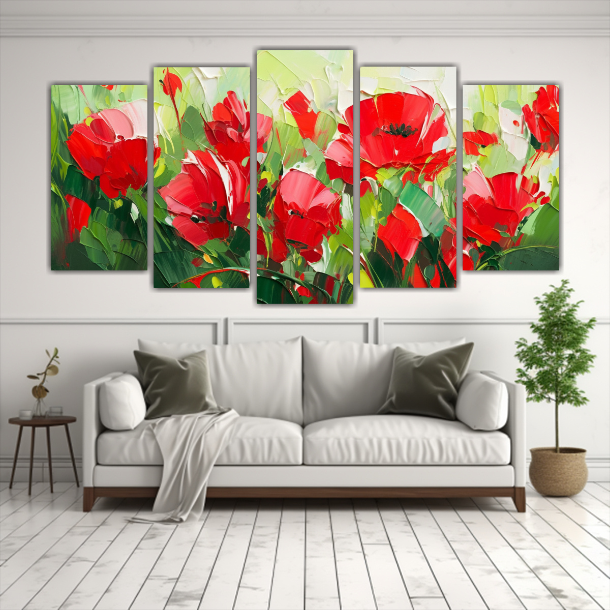Pintura Floral En Lienzo Verde Y Rojo Para Decoración Con Equilibrio Visual