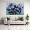 Pintura Floral Moderna En Lienzo En Colores Púrpura Y Turquesa
