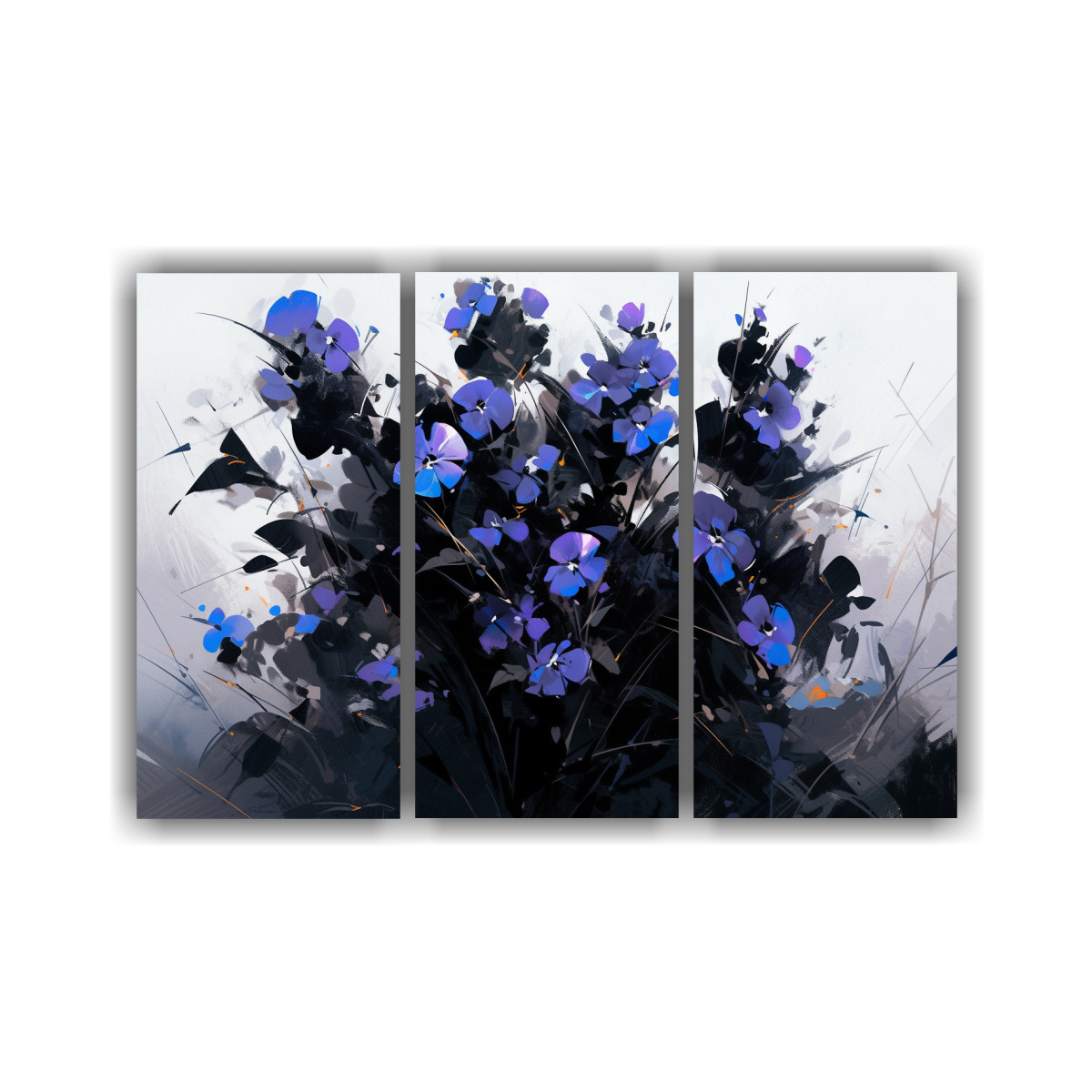 Pintura Floral Morada Y Negra En Lienzo Para Decoración.