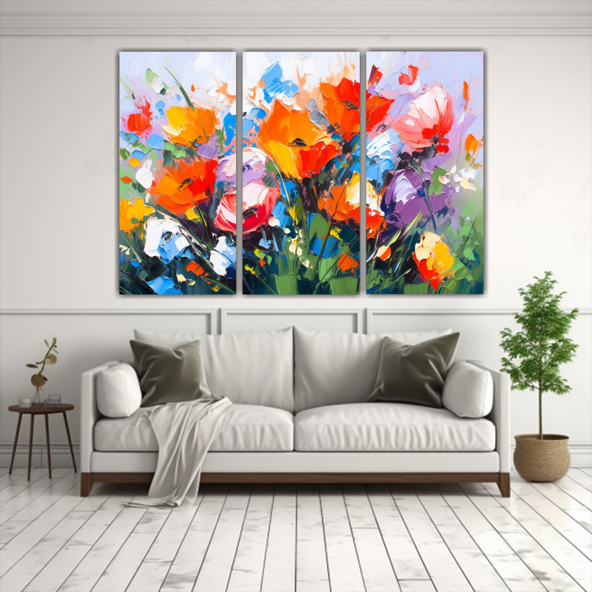 Este cuadro floral vibrante estilo Vib quedará espectacular en la pared principal de tu sala de estar, creando un punto focal llamativo Combínalo con cojines en tonos similares para lograr una decoración armoniosa y llena de energía positiva