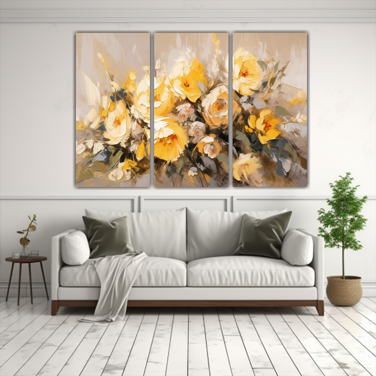 Renueva tu hogar con este hermoso cuadro de flores amarillas y doradas en bastidor con tres telas Envío gratis en Santiago y envíos express a regiones Calidad premium a precios inigualables Añade un toque de elegancia y color a tu espacio