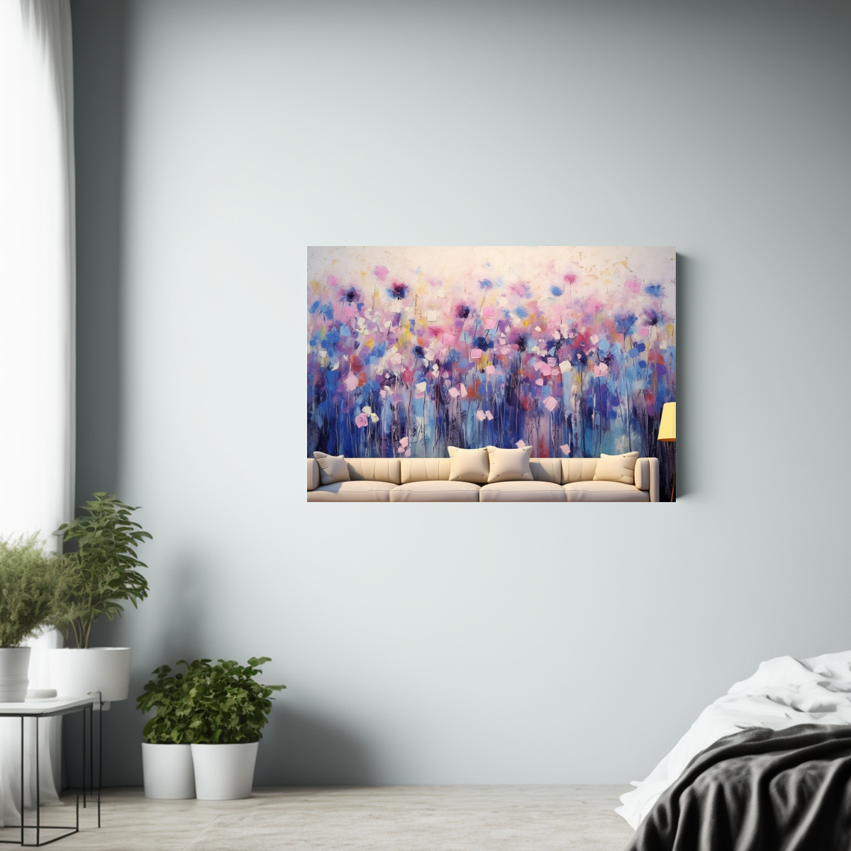 Pintura Flores Brillantes En Pared Blanca, Cuadro Abstracto