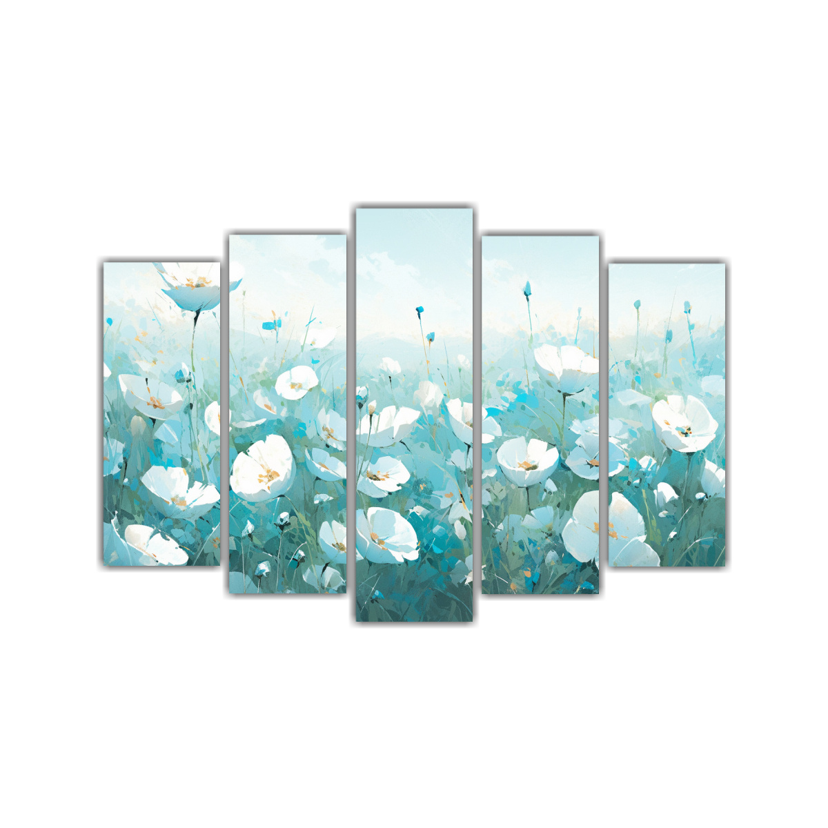 Pintura Flores Turquesa En Lienzo Estilo Decorativo.