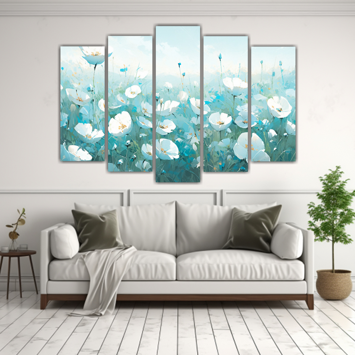 Para realzar la belleza de este cuadro, te recomendamos colocarlo en una pared de tonos neutros como blanco o beige, creando un contraste armonioso que resalte los colores turquesa y plateado Ideal para salas de estar o dormitorios
