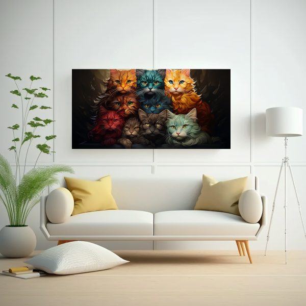 Agrega un toque de alegría y color a tus paredes con este cuadro de gatos apilados en tonos variados Envío rápido y gratuito en Santiago, y envíos express a regiones disponibles