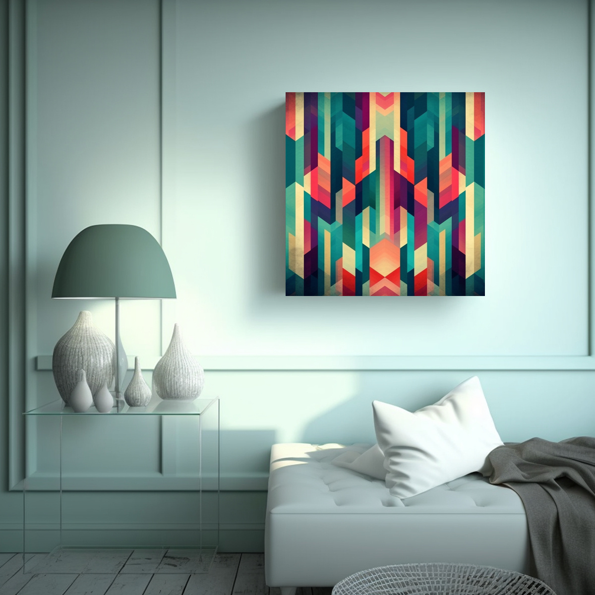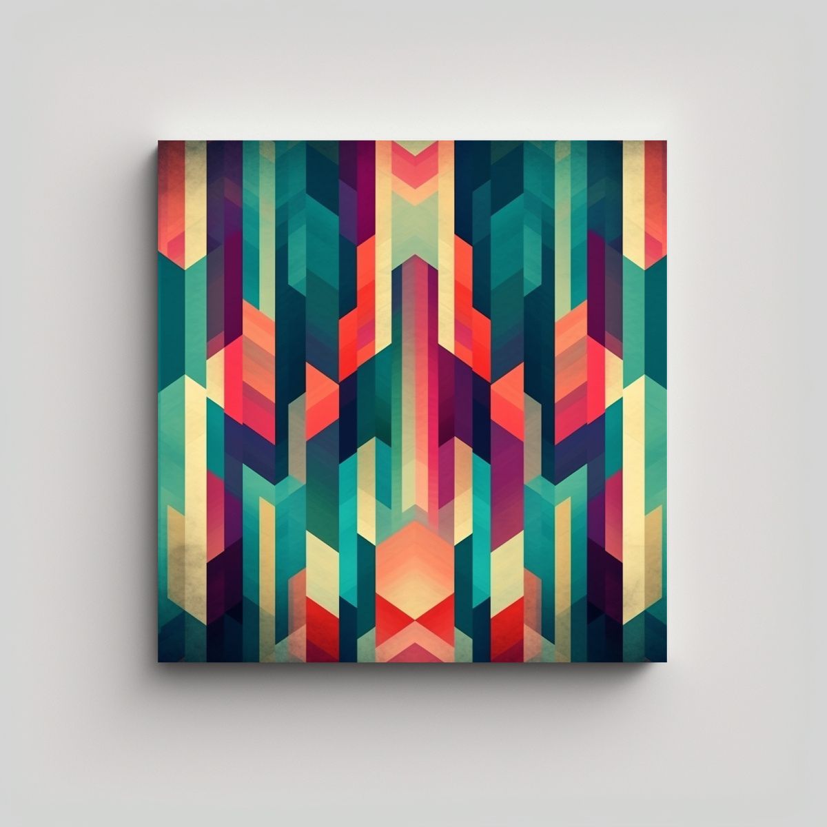 DecoCuadros te ofrece el cuadro de Pintura Geométrica en lienzo de alta calidad con colores Coral, Azul Marino grisaceo, Menta, Gris, Carmesí y Verde Azulado Nuestros cuadros son impresos en tela de máxima calidad con bastidores de madera, brindando la mejor calidad a precios económicos ¡Descubre diseños exclusivos y recibe tu cuadro de forma rápida y gratuita en Santiago! Enviamos a regiones de manera express