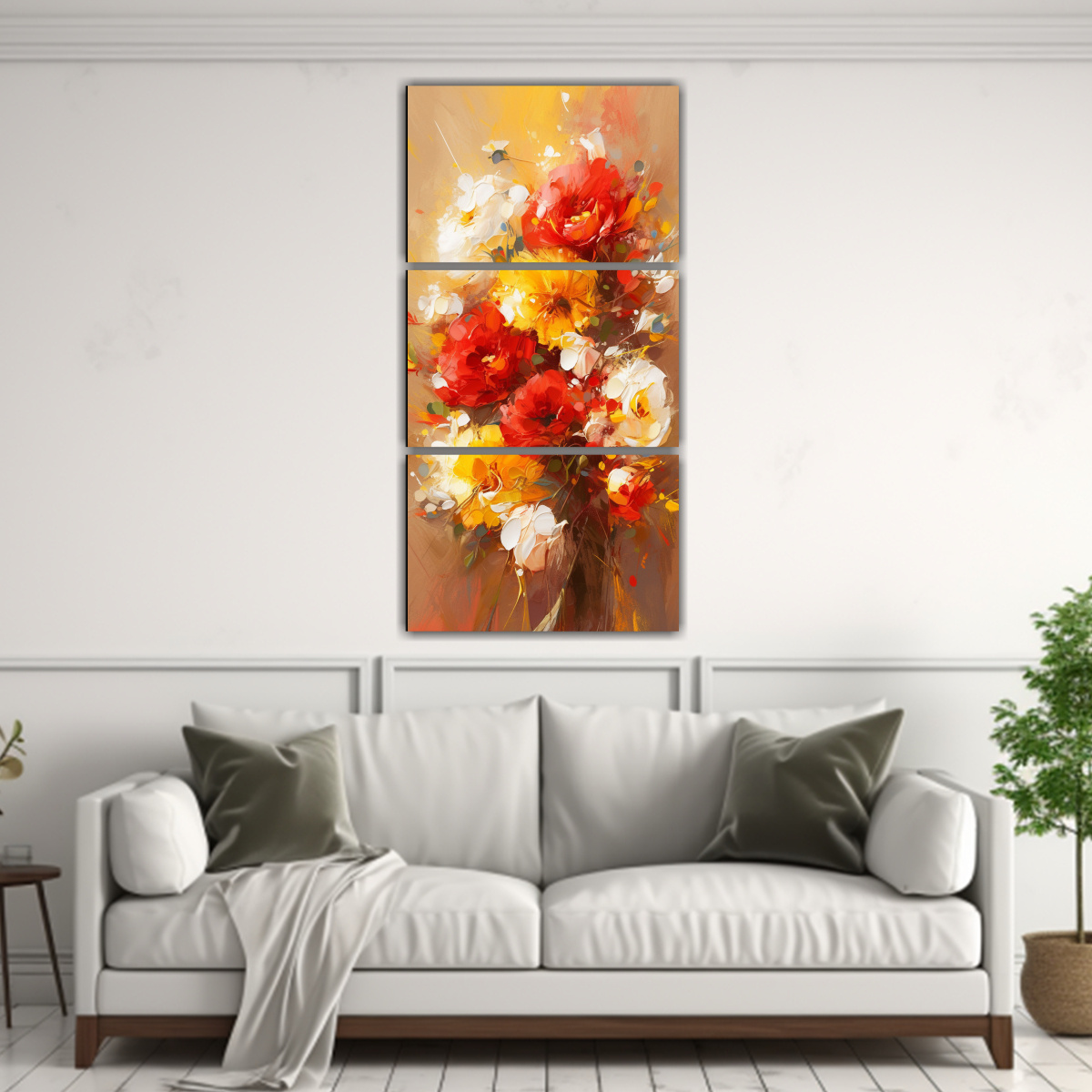 Pintura Impactante De Flores Amarillas Y Rojas En Lienzo