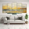 Pintura Impresa Con Acuarela Amarilla, Turquesa Y Dorada 2 Composiciones