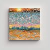 Pintura Impresionista De Campo De Flores Al Atardecer