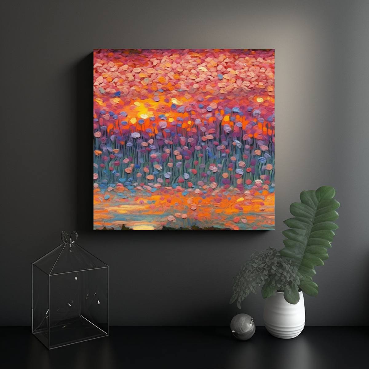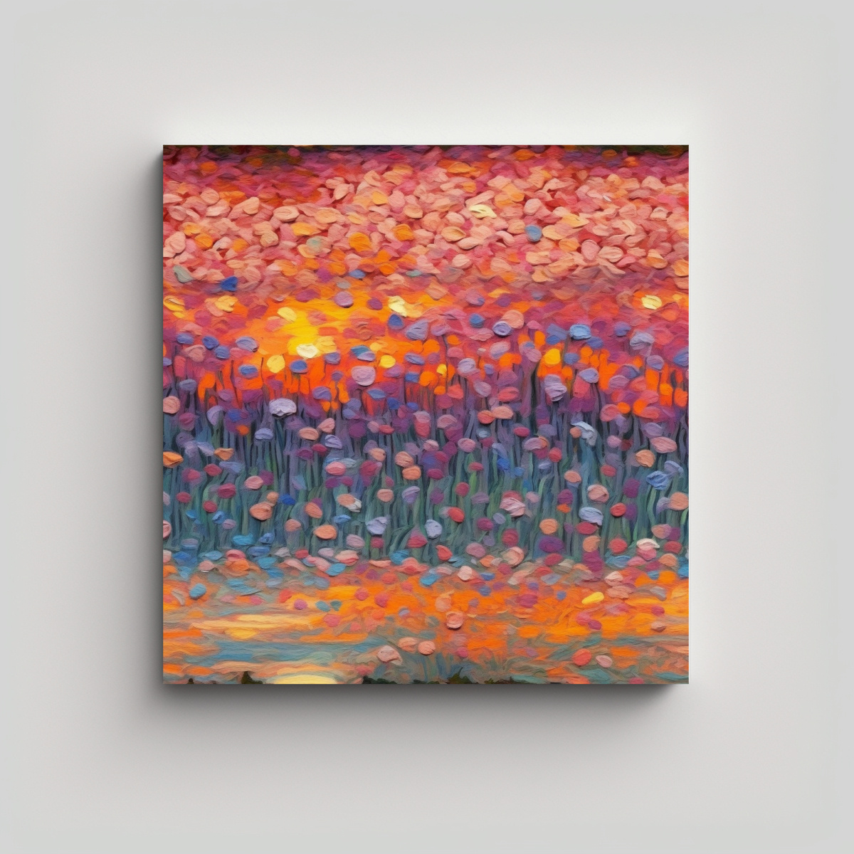Impresionante pintura impasto de campo de flores al atardecer en colores vibrantes Dale un toque de elegancia y color a tus espacios con la mejor calidad y precios económicos en DecoCuadros