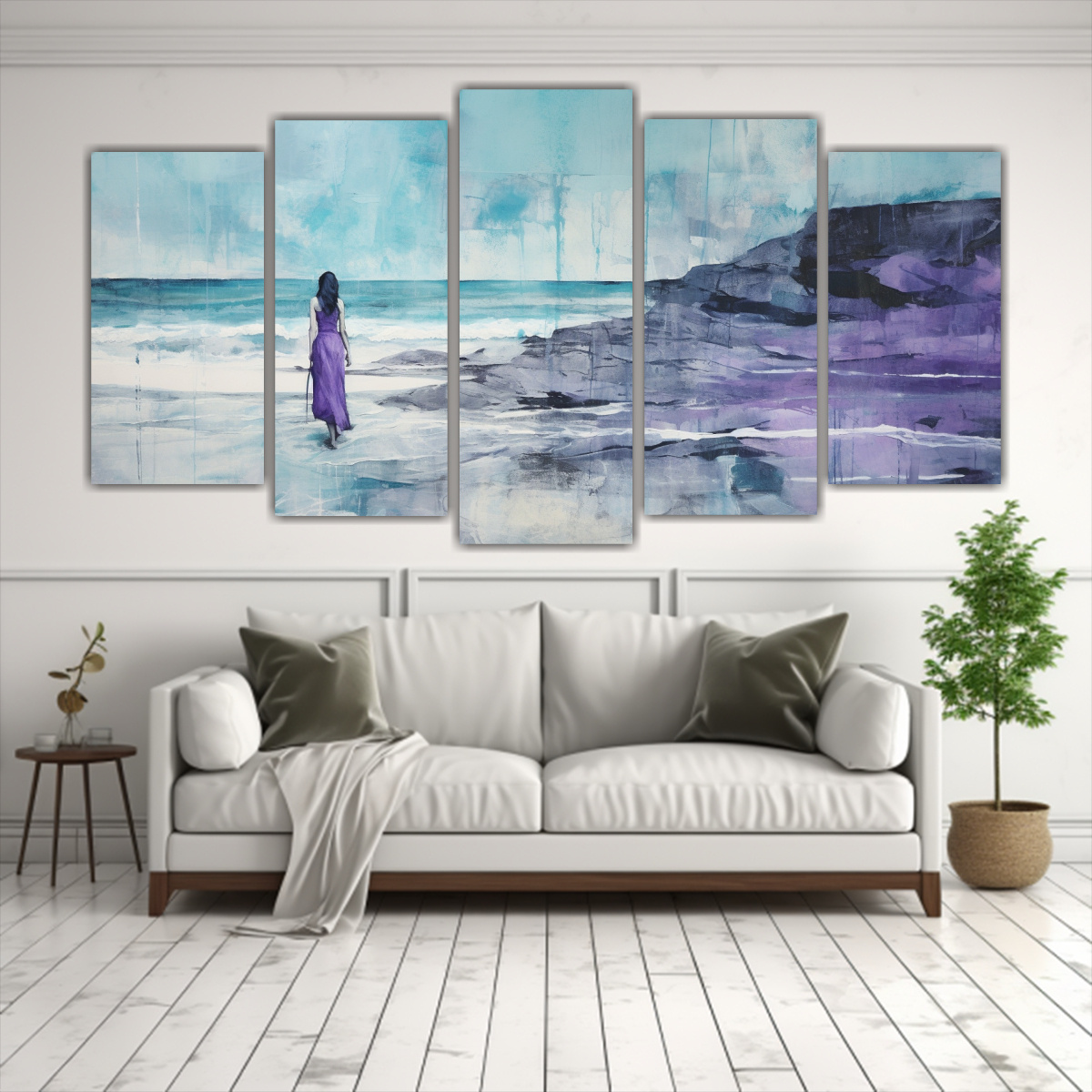 Este cuadro innovador de acuarela morada, verde azulado y plateada es ideal para decorar tu sala de estar o dormitorio Combínalo con muebles en tonos neutros como beige o gris, y añade accesorios en tonos turquesa para darle un toque de color Colócalo sobre una pared blanca para resaltar su belleza y crear un ambiente moderno y elegante