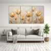 Pintura Innovadora De Tulipanes Dorados En Lienzo, Estilo Tres Composiciones Horizontal.