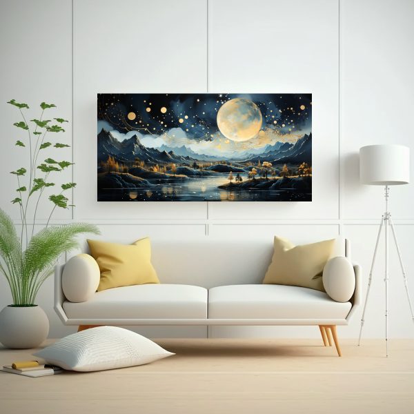 Este cuadro juvenil de Luna sobre montañas queda perfecto en dormitorios o salas de estar, creando un ambiente tranquilo y mágico Combínalo con tonos neutros y elementos decorativos en plata para resaltar su diseño único