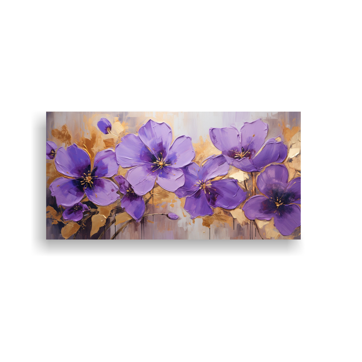 Pintura Juvenil De Flores Moradas Y Doradas En Lienzo Para Decoración