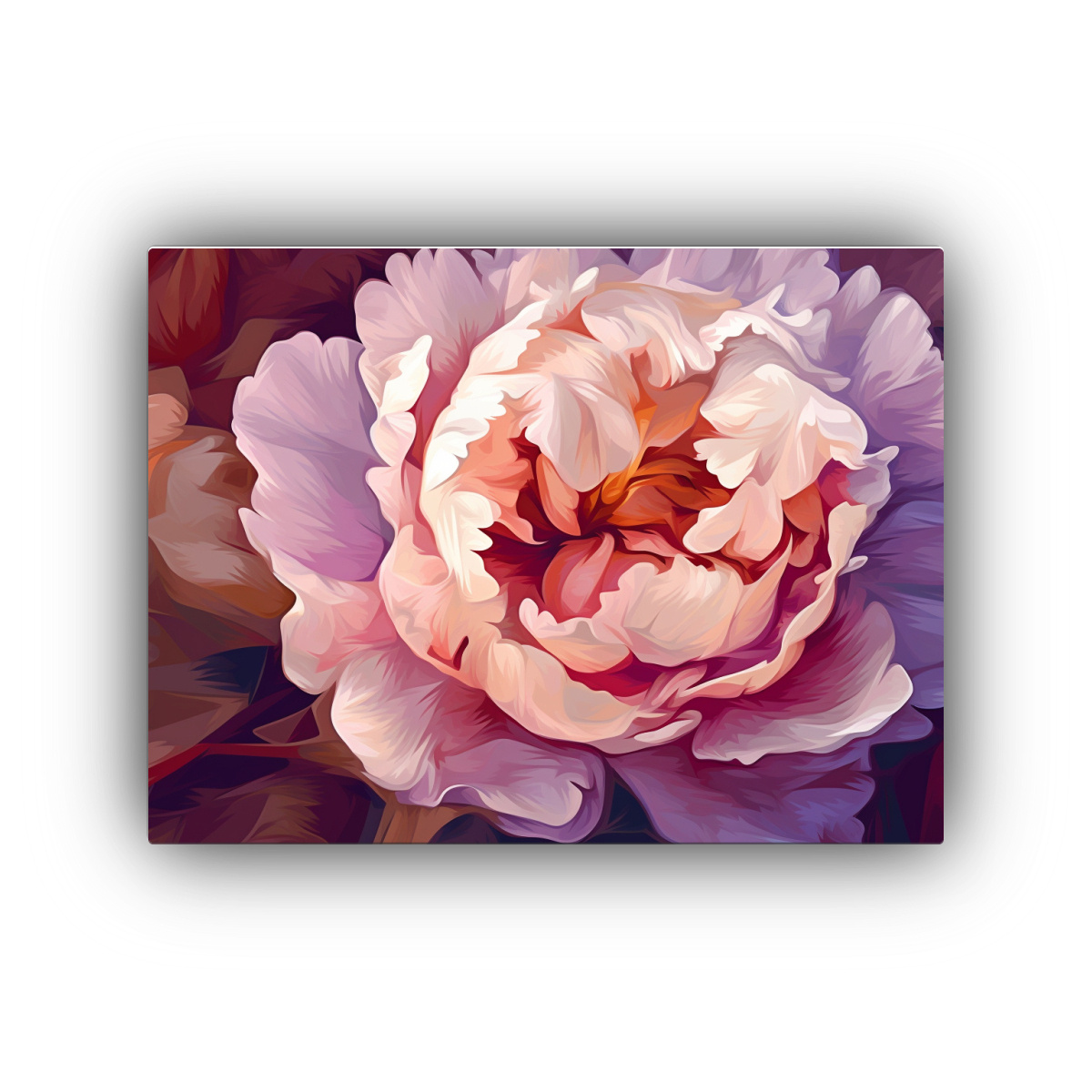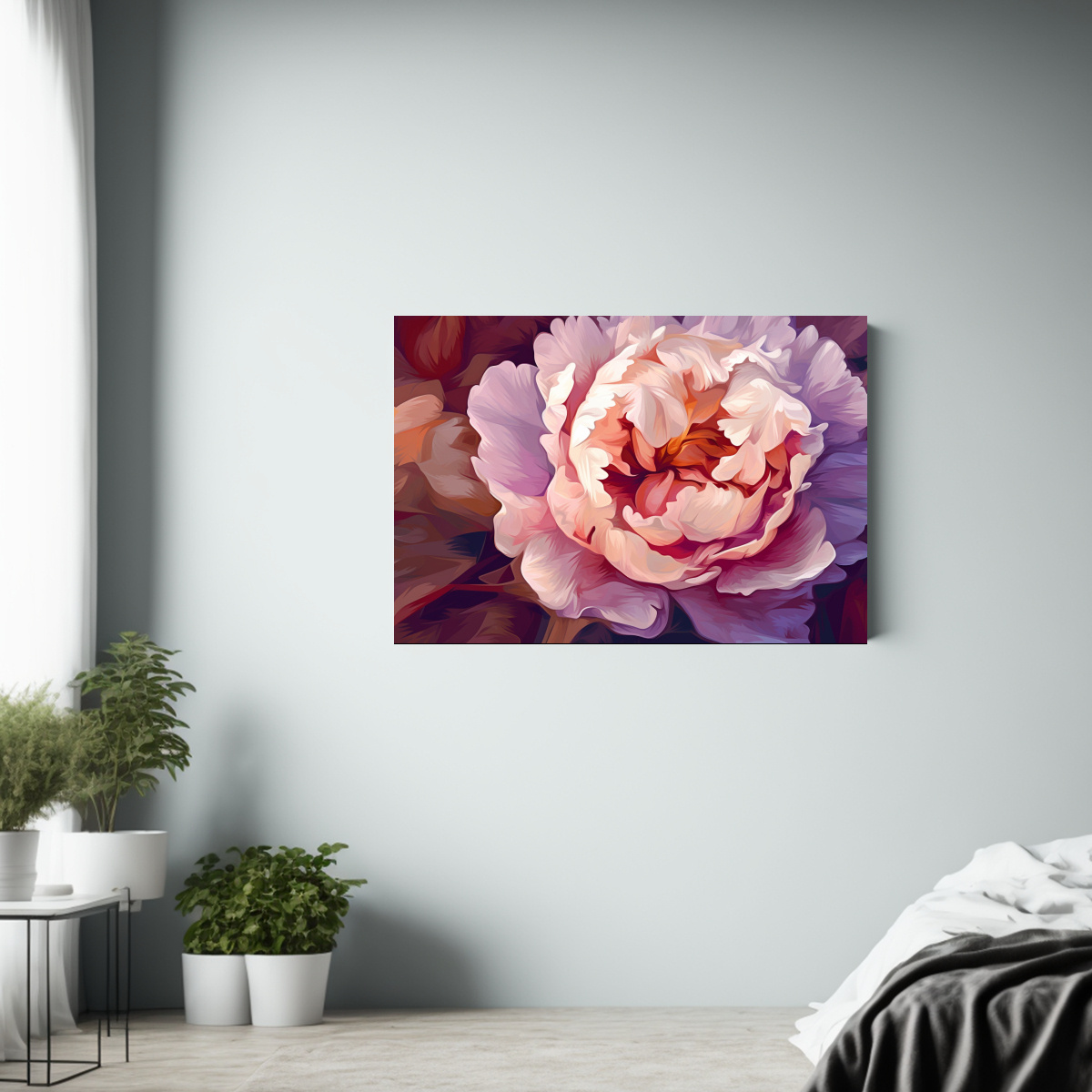 La composición en tela Canvas de una hermosa flor púrpura con tonos de azul marino grisaceo, lila y coral destacará en tu ambiente Atrévete a darle un toque de sofisticación a tus paredes con este cuadro único