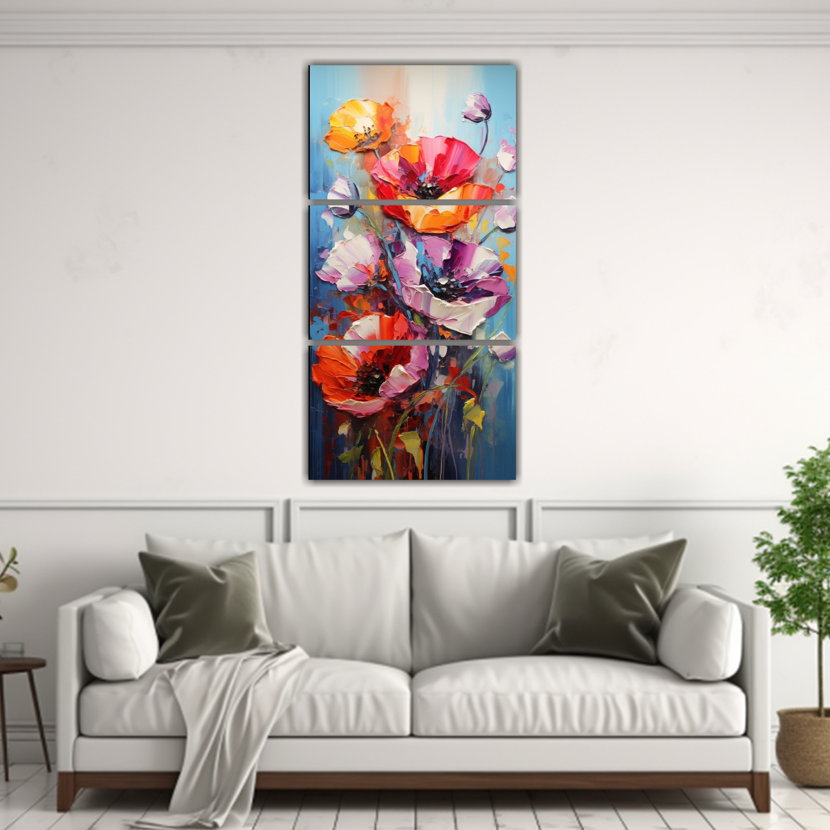 Este cuadro de amapolas arco iris se vería espectacular en una pared blanca o en una habitación con tonos neutros para crear un contraste vibrante y lleno de vida Combínalo con muebles en tonos grises o blancos para resaltar su belleza y agregar un toque de color único
