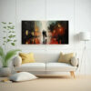 Este cuadro Caminando bajo la lluvia es perfecto para decorar salas de estar o espacios de relajación Colócalo sobre un sofá de color neutro para resaltar los tonos plateado, dorado y gris del cuadro Combínalo con cojines en tonos carmesí y coral para agregar un toque de color y vitalidad El ambiente creado por esta pintura en lienzo te transportará a una escena tranquila y serena, ideal para momentos de relajación y contemplación