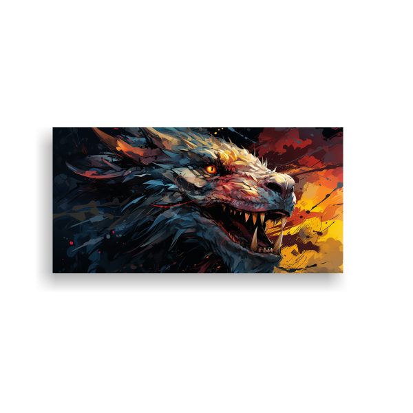 Pintura Lienzo Dragón En Amarillo Y Rojo Neonoir Naturaleza Viva