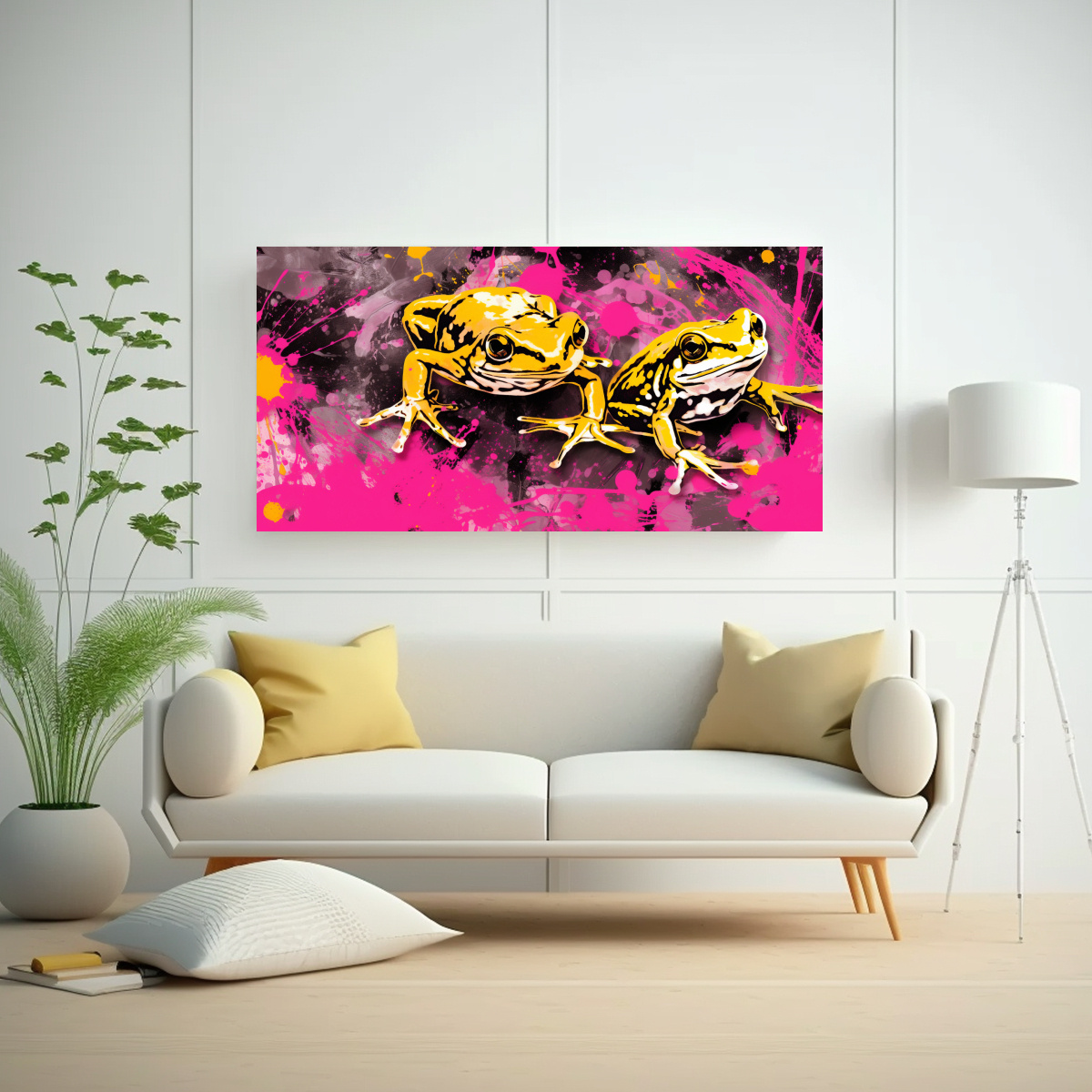 Pintura Lienzo Espectacular De Ranas Y Sapos En Colores Oro Y Rosa Neo Pop Art
