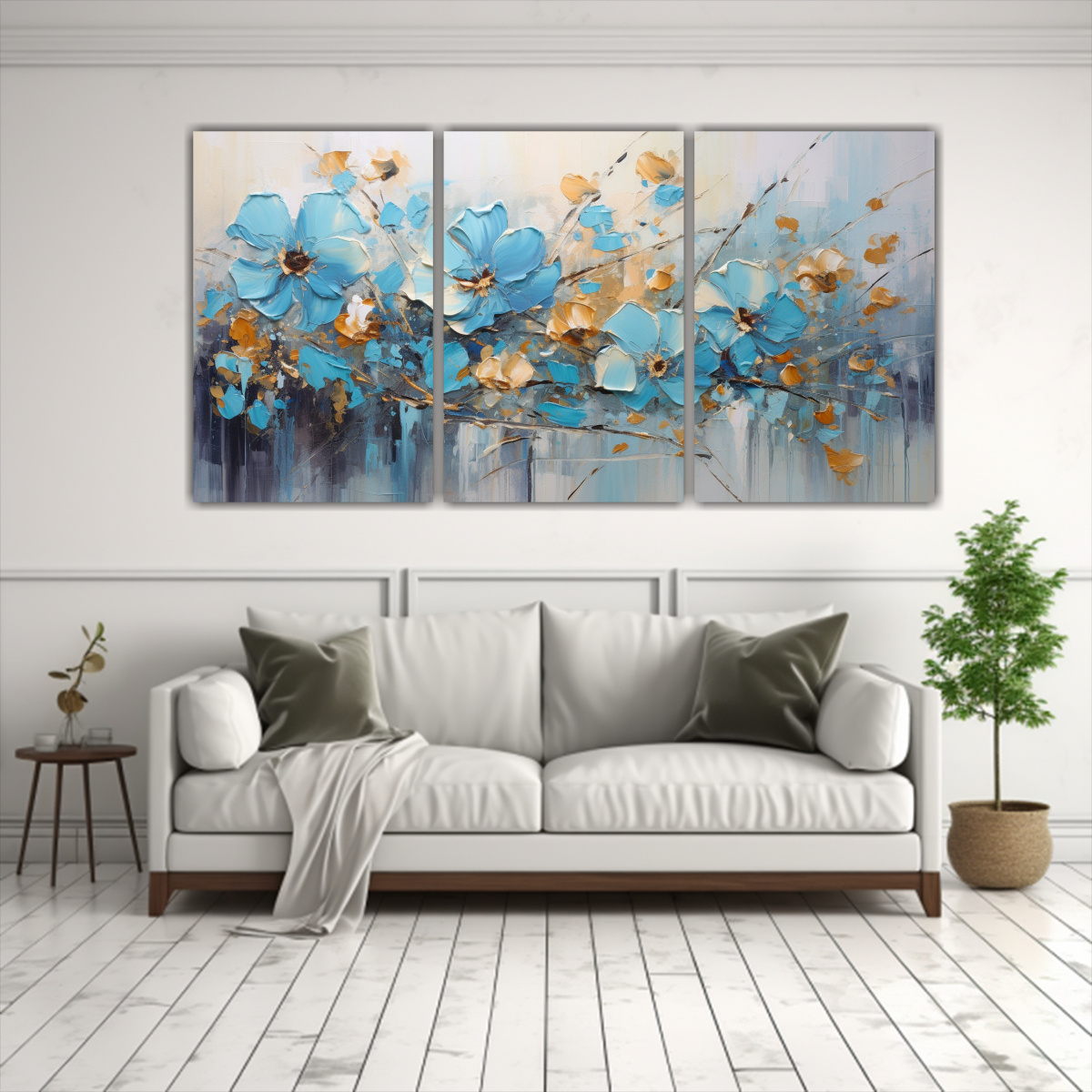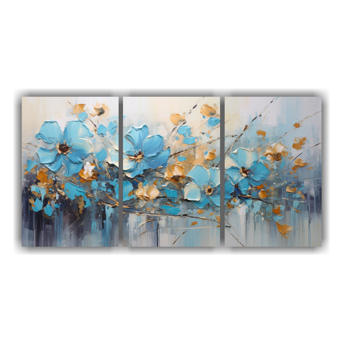 Pintura Lienzo Flores Azules En Estilo Actual Para Decoración