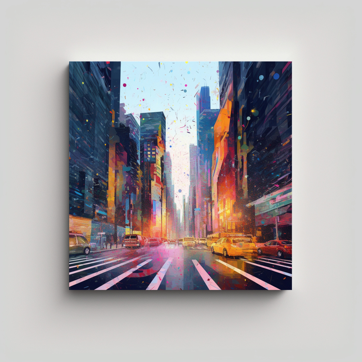 Pintura Lienzo Forma Colorida De Paisaje Urbano Generada Por IA